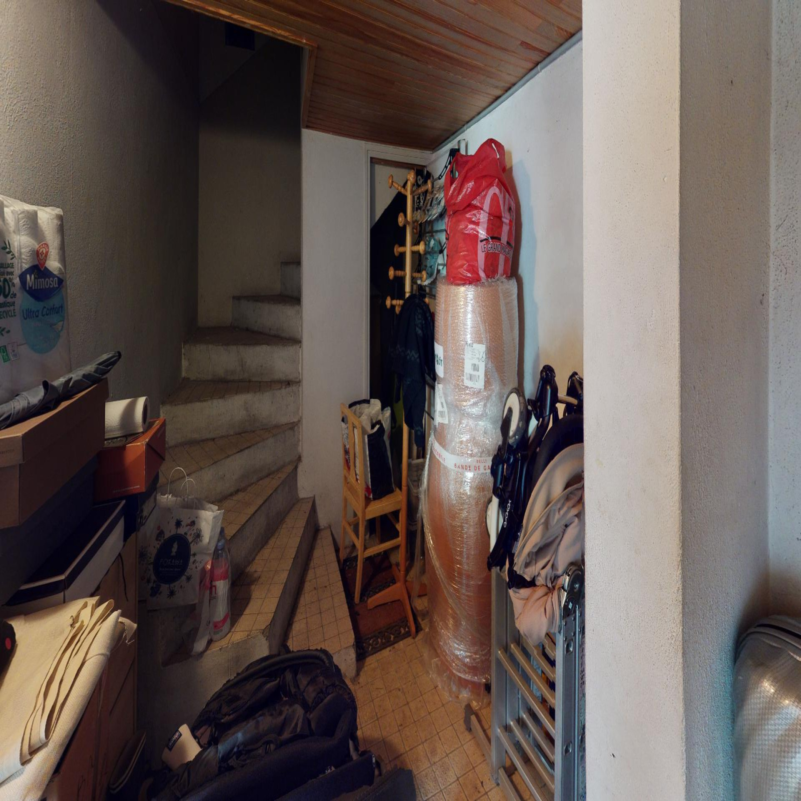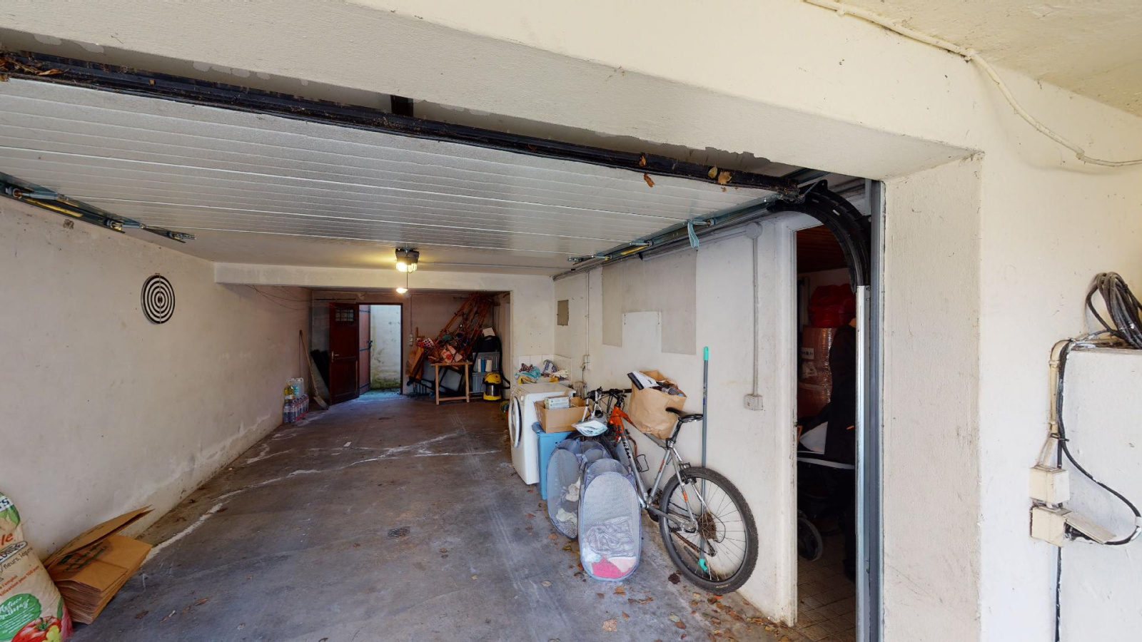 Sous-sol : garage double (28 m²), 2 pièces, escalier d'accès l'étage, escalier d'accès à la terrase arrière.