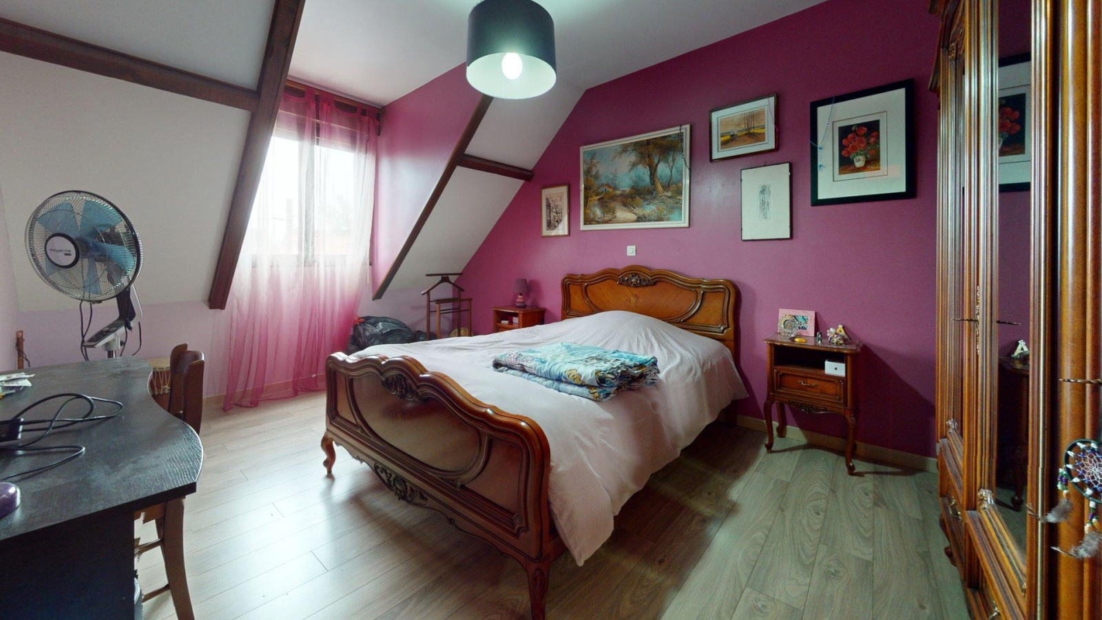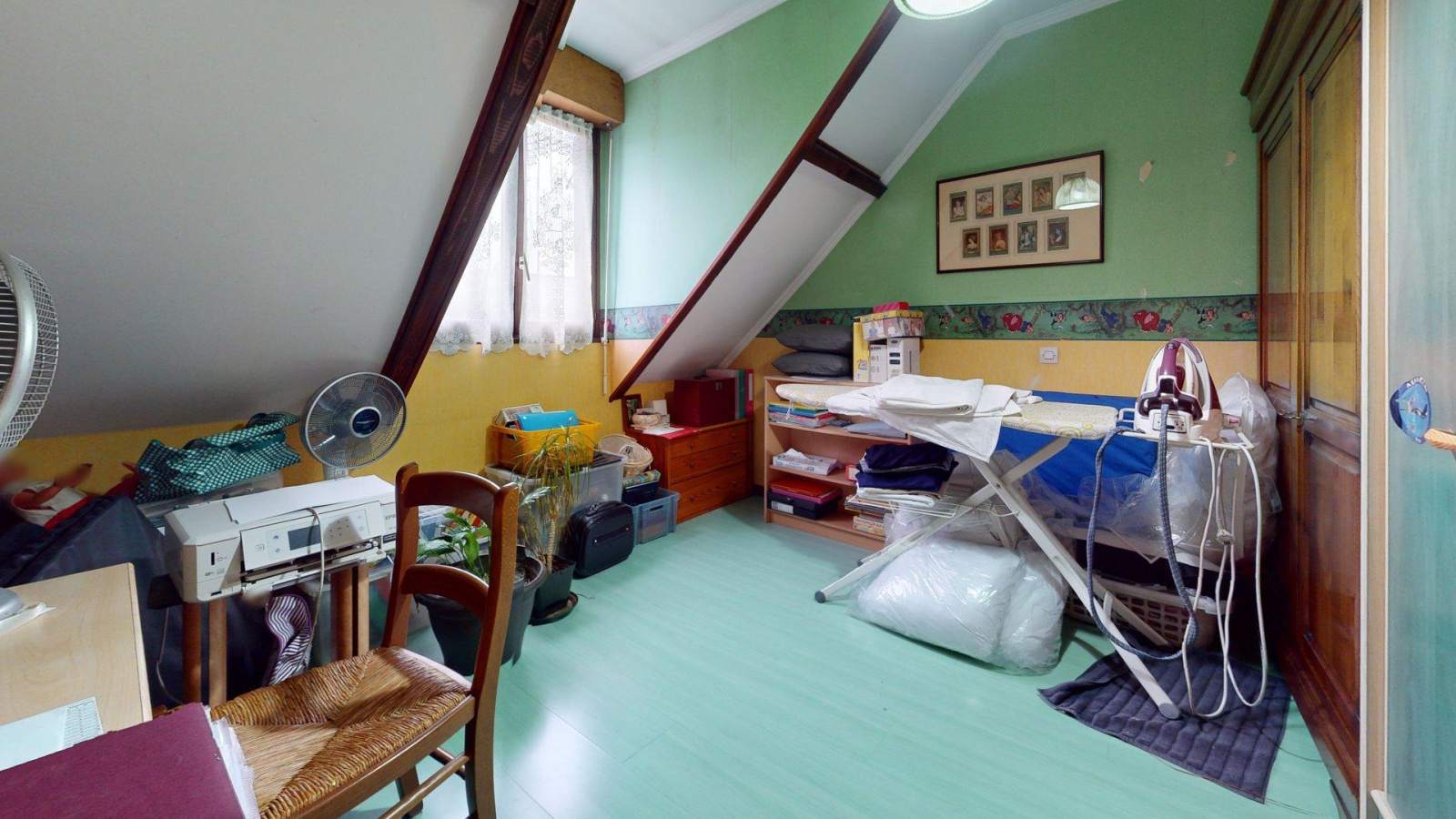 Etage : bureau-salle de jeux ouvert, 3 chambres, salle d'eau, wc.