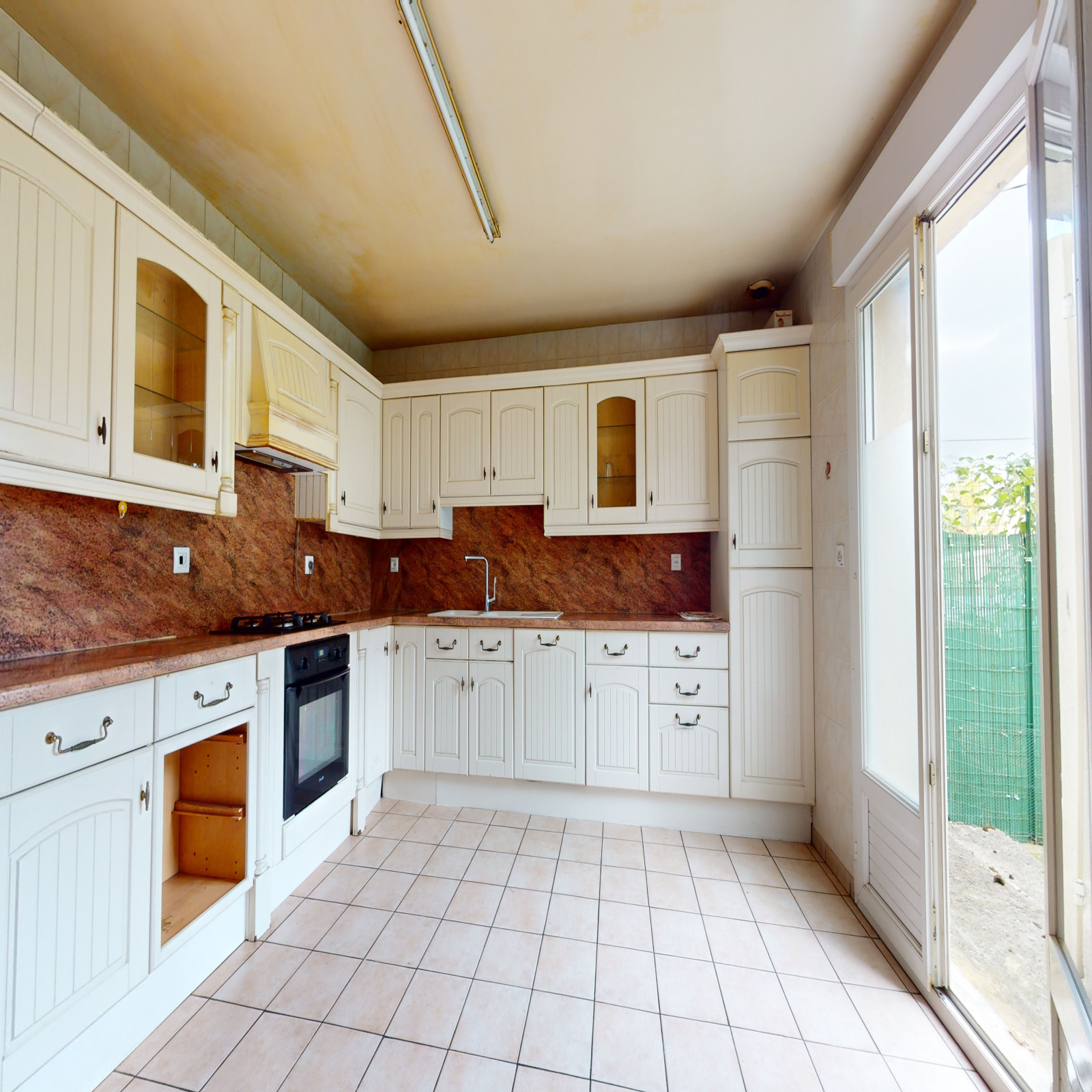 Sous-sol total avec garage accessible par un portail motorisé. Terrain carrelé sur l'avant et jardin sur l'arrière.
